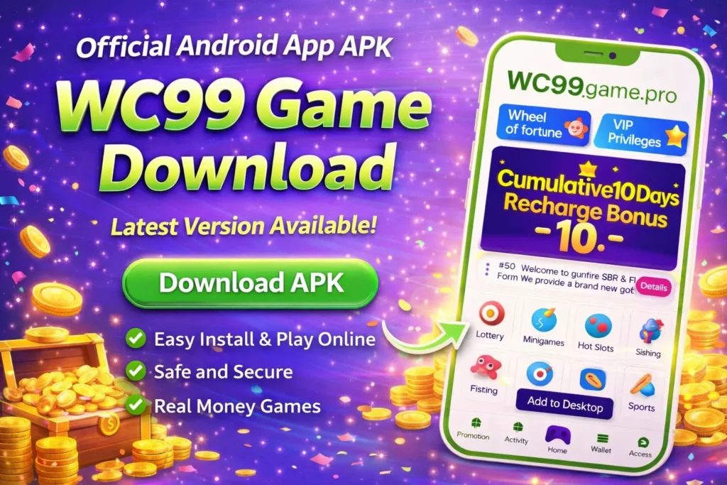 WC99 Game is a fast-growing online gaming platform that allows users to play exciting real money games, slots, lottery, fishing games, and mini games. If you are looking for a safe and simple way to download the app, this guide will help you with the WC99 Game download process step by step.